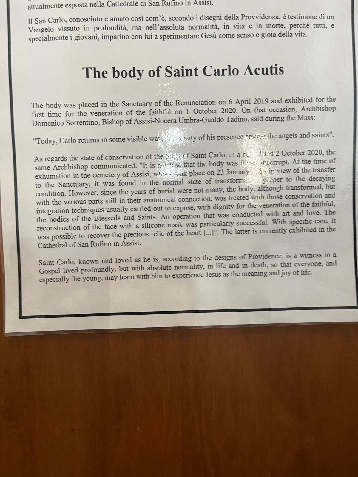 Francis and St Clare and the tomb of our new Saint Carlo Acutis. All three